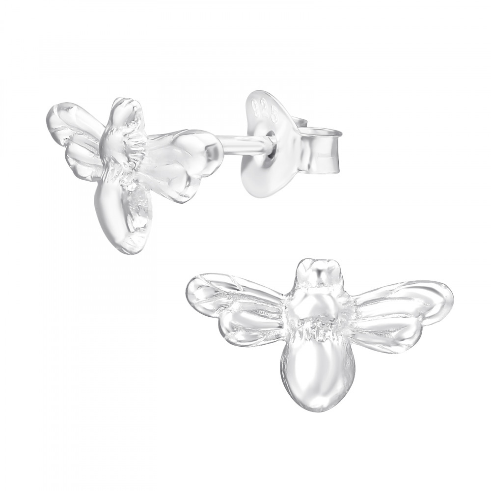 Bee - 925 Sterling Silver Plain Ear Studs. 11 mm x 6.5 mm.
