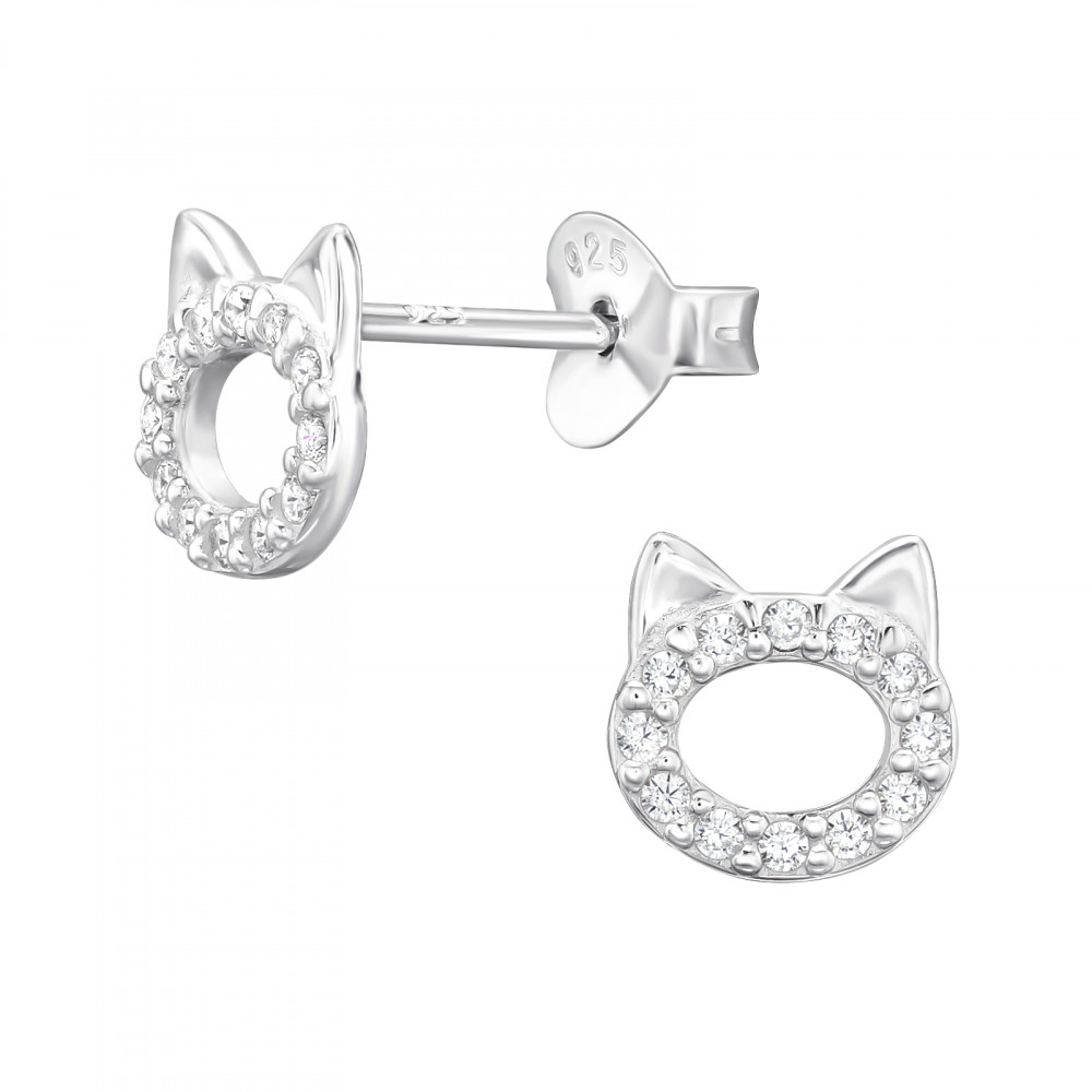 Cat - 925 Sterling Silver Cubic Zirconia Ear Studs . 7 mm x 7 mm.