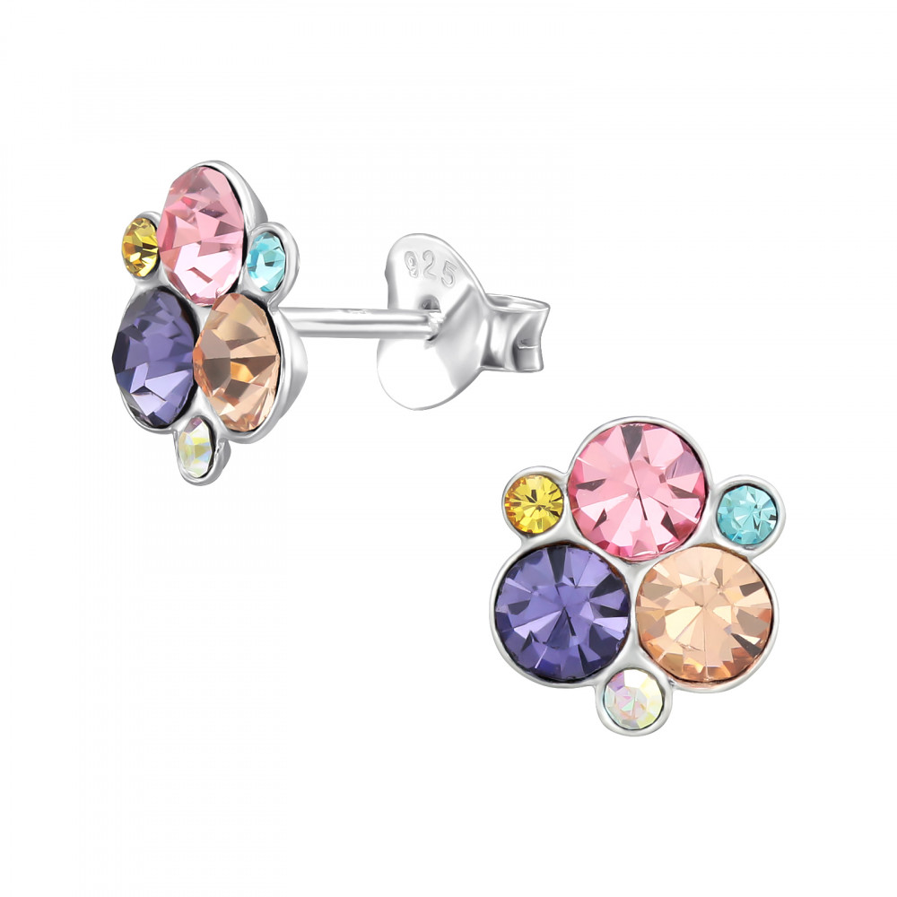 Crystal cluster - 925 Sterling Silver Colourful Crystal Ear Studs. Lovely pastel shades. 7.5 mm x 8 mm