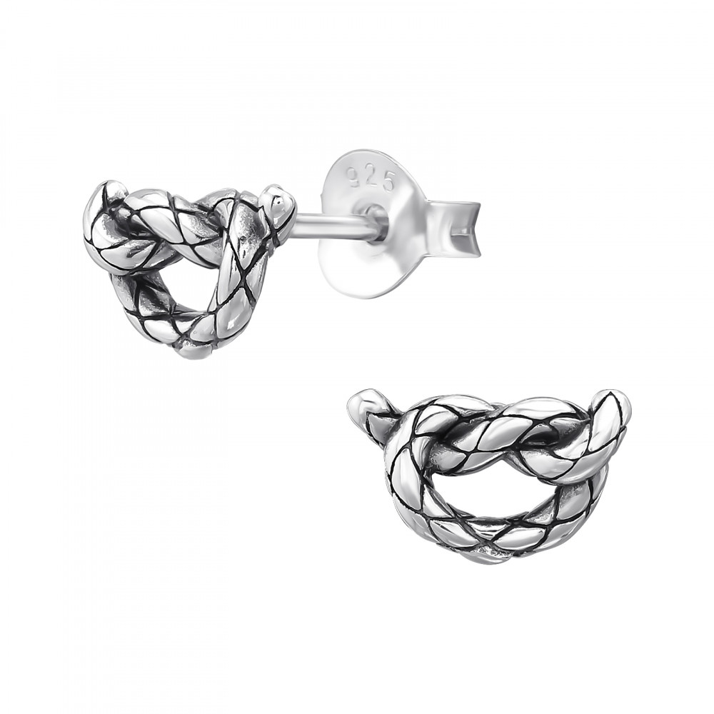 Knot - 925 Sterling Silver Plain Ear Studs. Oxidised finish. 8.8 mm x 5.3 mm.