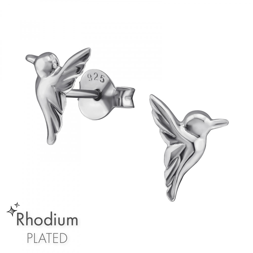 Hummingbird Bird - 925 Sterling Silver Plain Ear Studs. Rhodium plate to prevent tarnish. 7.1 mm x 8.1 mm.
