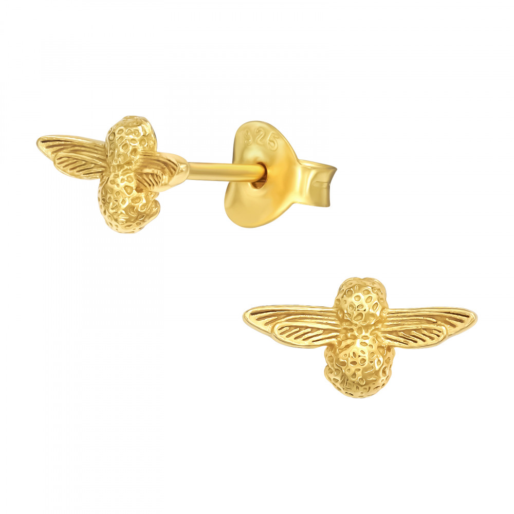 Bumble Bee - Gold Plated 925 Sterling Silver Plain Ear Studs. 10 mm x 5 mm.