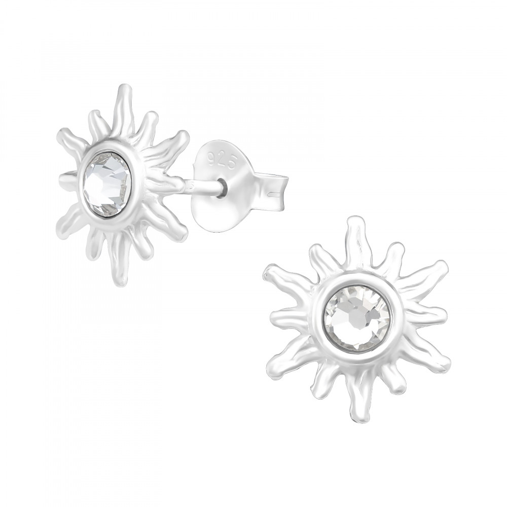 Sun - 925 Sterling Silver Crystal Ear Studs. 10 mm x 10 mm.