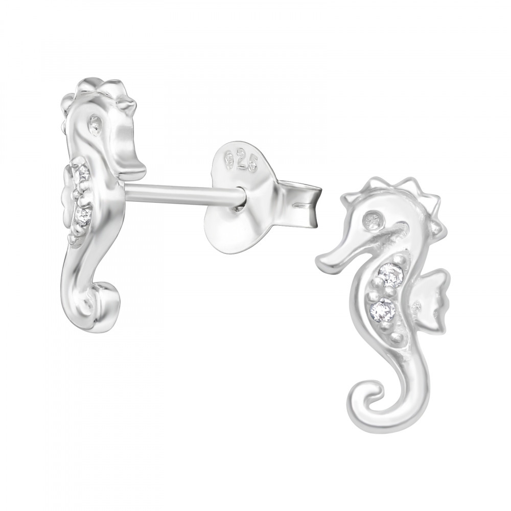 Seahorse - 925 Sterling Silver Cubic Zirconia Ear Studs. 5 mm x 10 mm.