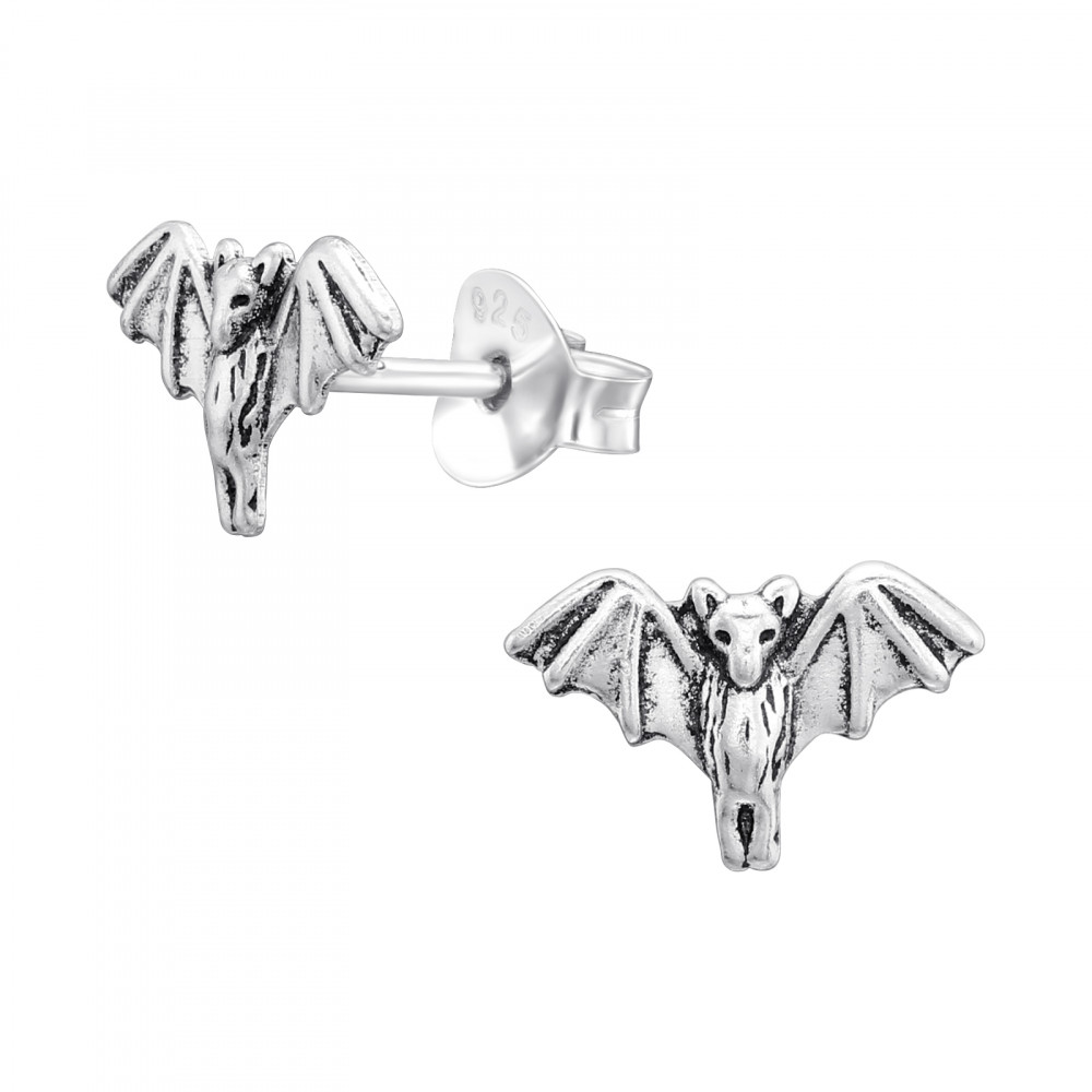 Bat - 925 Sterling Silver Plain Ear Studs. Oxidized finish. 10 mm x 6 mm.